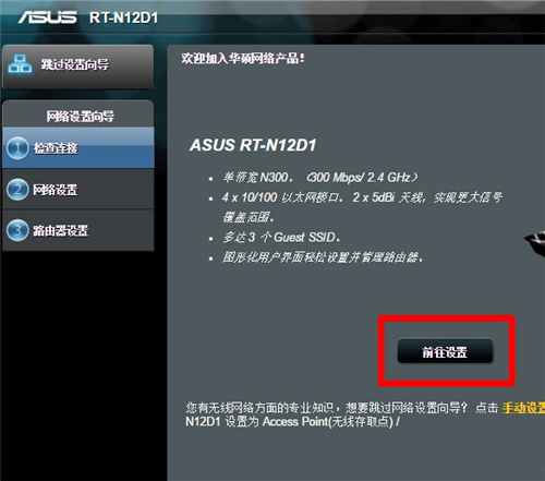 温馨提示:某些型号的华硕路由器,会出现如下所示的页面,请点击“自动设置”,如下图所示。